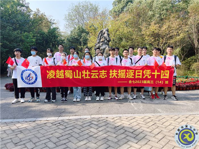 10月1日早九时,朝阳高悬的大蜀山脚下,红旗舒展,横幅醒目“凌跃蜀山壮云志,扶摇逐日看十四”,为响应合肥七中团委“强国新青年 奋进新时代”合肥七中学子十一打卡倡议高三年级14班部分同学在班干部的带领下开展登蜀山毅行活动,庆祝祖国73华诞、喜迎党的二十大胜利召开。